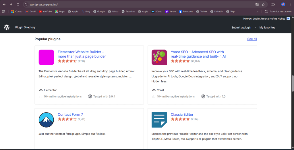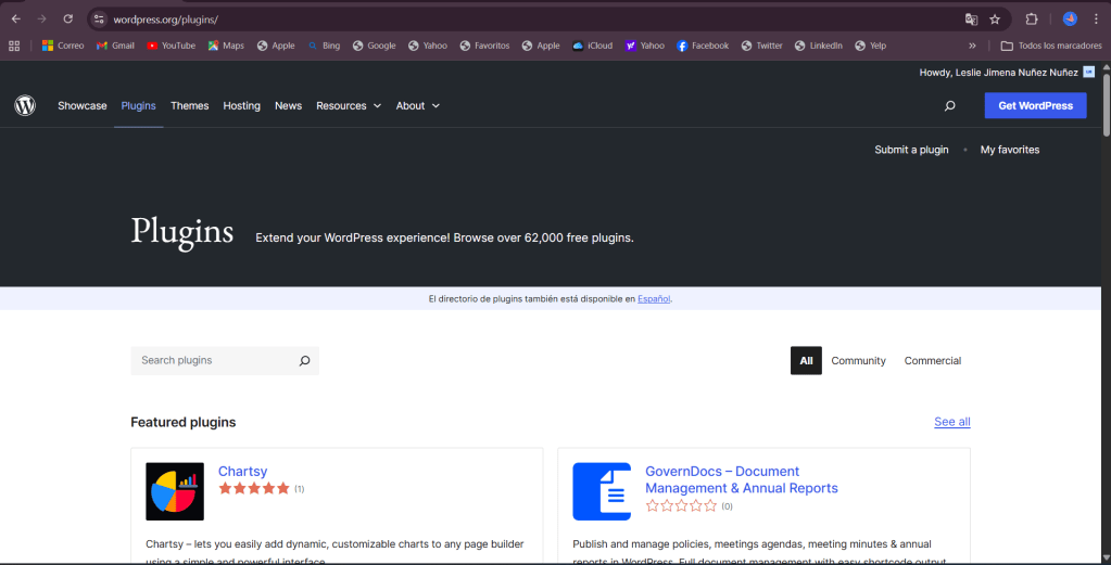 En esta etapa del proyecto decidí ampliar mi experiencia dentro del equipo Polyglots explorando nuevas áreas de contribución, específicamente la traducción de plugins en WordPress. Para continuar con mi proceso de aprendizaje dentro de WordPress, ingresé al directorio de plugins, donde se encuentran múltiples herramientas desarrolladas por la comunidad.